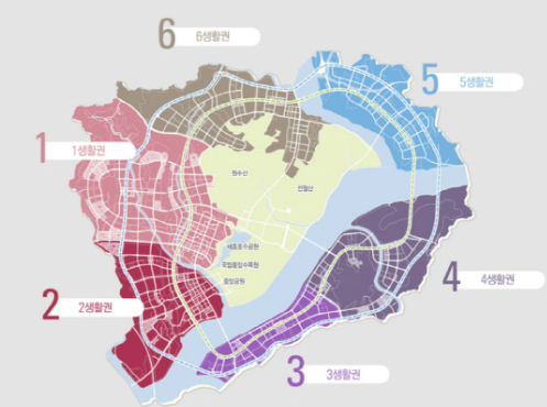 One core issue Sejong faces is the lack of a “downtown” area. Sejong’s theme of decentralization was implemented by designing the administrative city into a ring-shaped system with no particular central hub, distributing its functions into six living zones. Zones 1 through 6 encircle Zone S, a space left open to preserve the natural environment. As of 2024, more than half of the population resides in Zones 1 and 2. Zone 1, with the Prime Minister’s Office, the Government Complex, and forty-four central administrative agencies, represents central administration. Zone 2, on the other hand, is a place for arts & culture and international commerce. Each of the six zones incorporates unique public facilities that align with their designated themes.